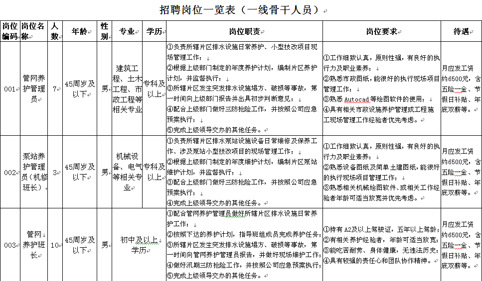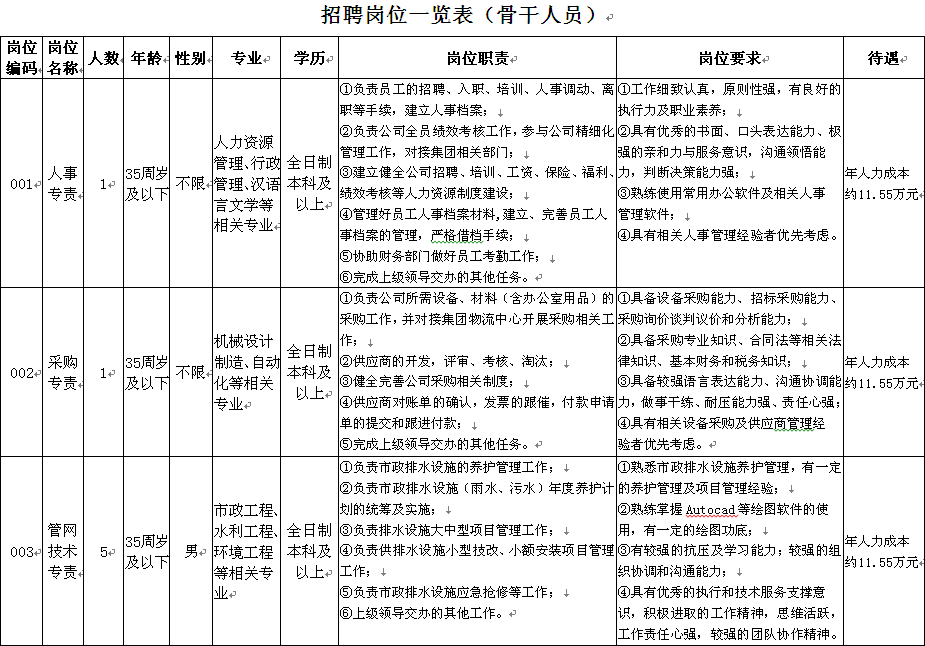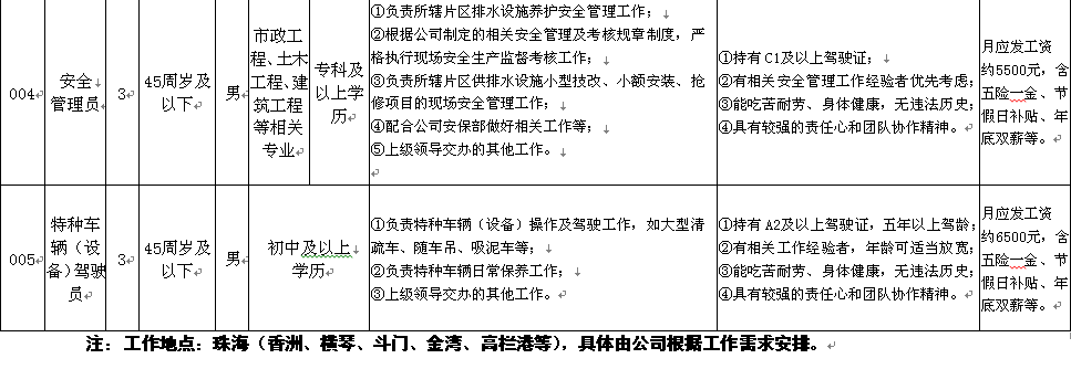 【珠海供排水管网有限公司】招聘简章