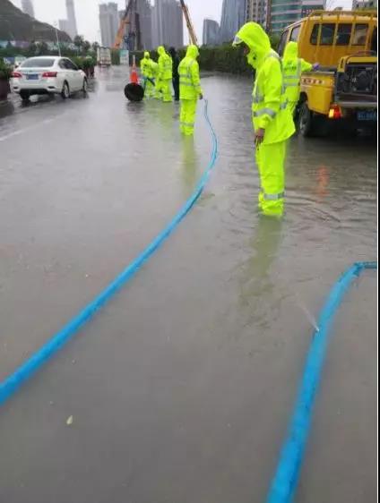 下午,管网公司出动的强排车在湾仔江海路、蓝盾路、旅游路、南洋铺村等水浸地点进行强力抽排。部分已畅通路段的抢险人员转移到这些水浸区域进行支援。管网公司抢险班组将加强巡查及蹲点抽排,确保严重水浸路段尽快恢复正常通行。