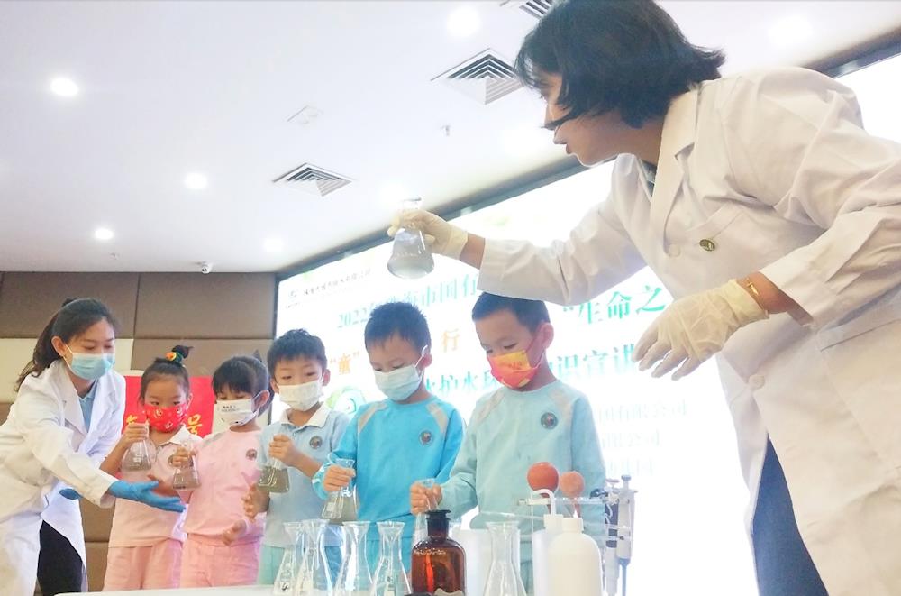 “污水变成清水前需要经过怎样的处理?为什么脏水不能喝?小朋友知道里面都有哪些坏东西吗……”在节水护水环保课堂上,为了便于孩子理解接受,宣讲人员精选教案,通过卡通动画视频方式宣讲环保知识,介绍污水处理过程,讲解各种藏匿在污水中的有害微生物,并通过现场实验,直观展示污水由黑变清的过程,通过实验互动传播城市文明理念,增强孩子的节水意识。