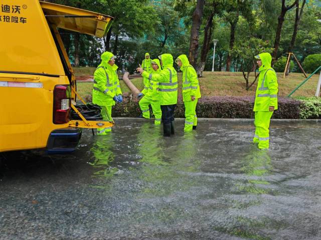 智慧水务防汛调度系统同步发挥作用。横琴大道、港澳大道、富盈酒店周边出现积水后,伟德国际1946及时安排排涝车辆、“龙吸水”等设备上阵,确保合作区各条道路在“红暴”中保持“车通人通”的通行状态。